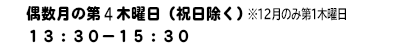 | 相談内容 | 日時 | 付記 | 偶数月第4木曜日 (祝日除く) 13:30-15:30 ※12月のみ第1木曜日 |