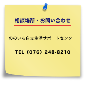 生活に不安を抱えている方の相談に応じ、自立し安定した生活が営めるよう支援します。 問い合わせ(076)248-8210 |